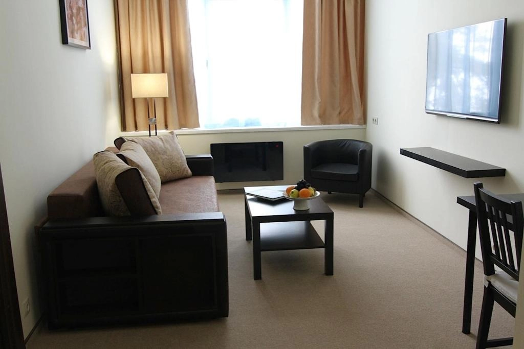 Площадь номера - 36 кв.м. 2 осн. места. 2 доп. места. Мебель: вешалка, диван раскладной, зеркало, кресла, кровати односпальные /одна двуспальная кровать, прикроватные тумбочки, стол, столик журнальный, стул, шкаф. Оборудование: кондиционер, набор посуды, сейф, телевизор, холодильник, электрочайник. Санузел. Сервис: смена полотенец, смена постельного белья, уборка номера.